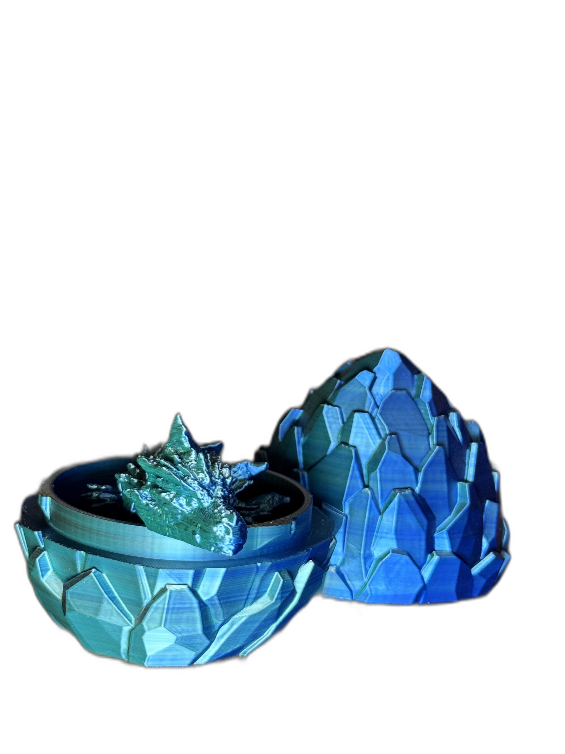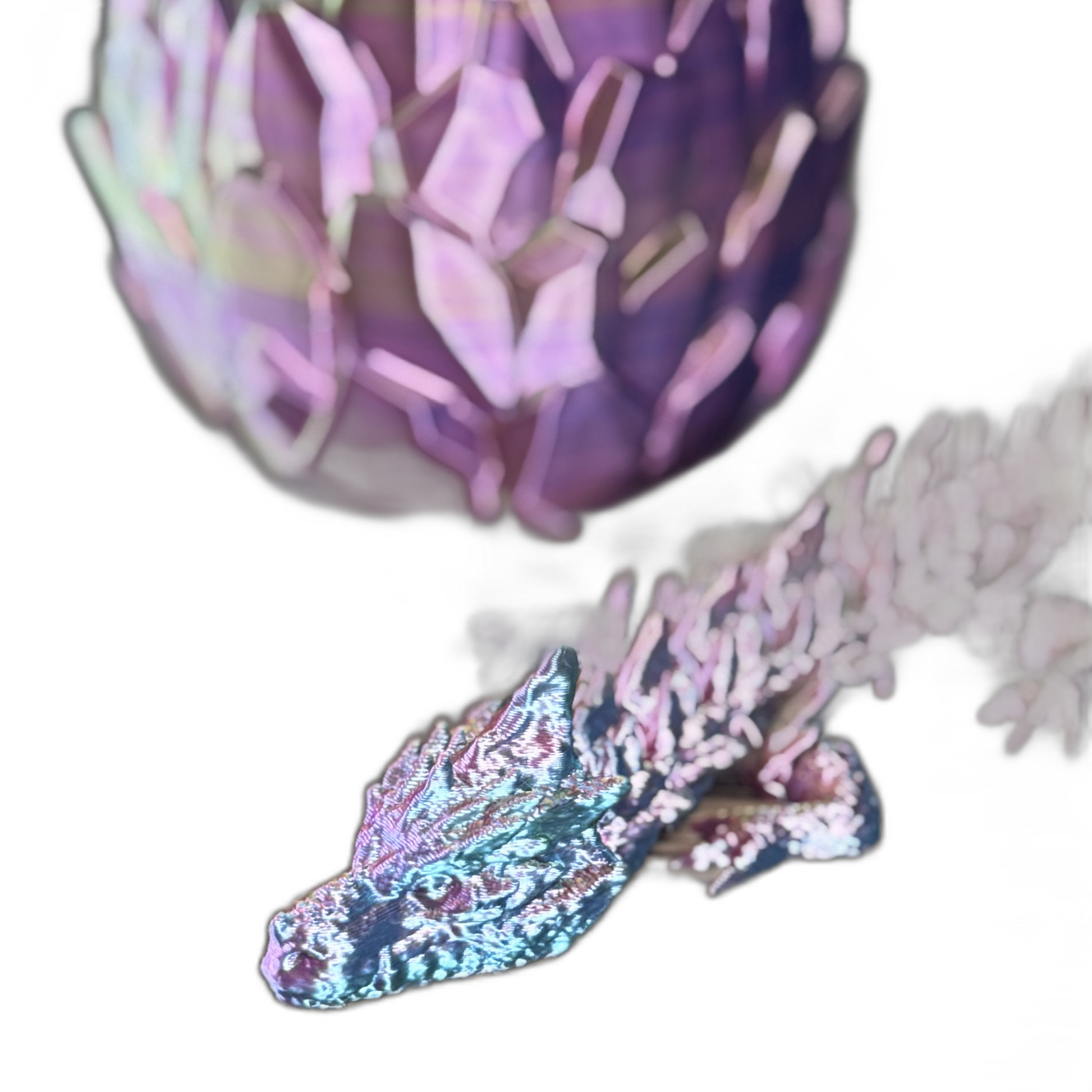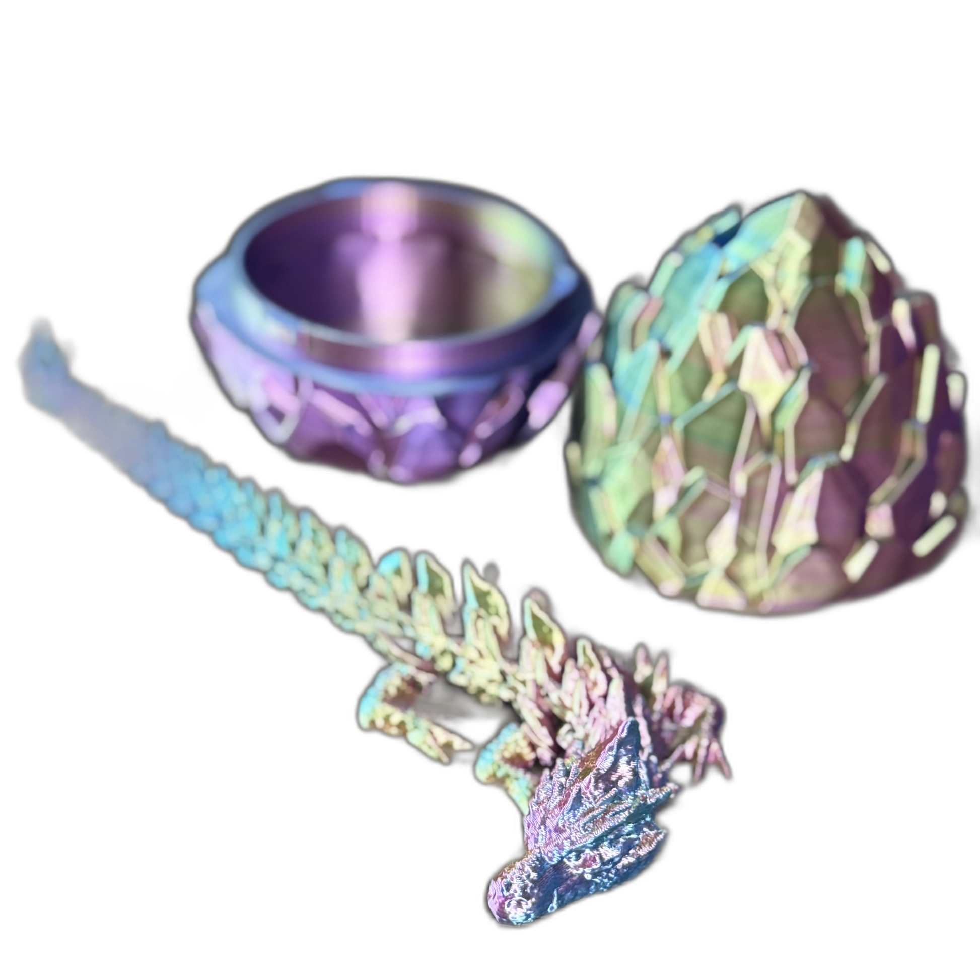 Crack open a crystal-coated legend. This magical 3D printed dragon egg features a twist-open design and reveals a fully articulated dragon inside — flexible, detailed, and coiled to fit snugly within the egg. Perfect as a fantasy display, gift for D&D fans, or a conversation-starting collectible.