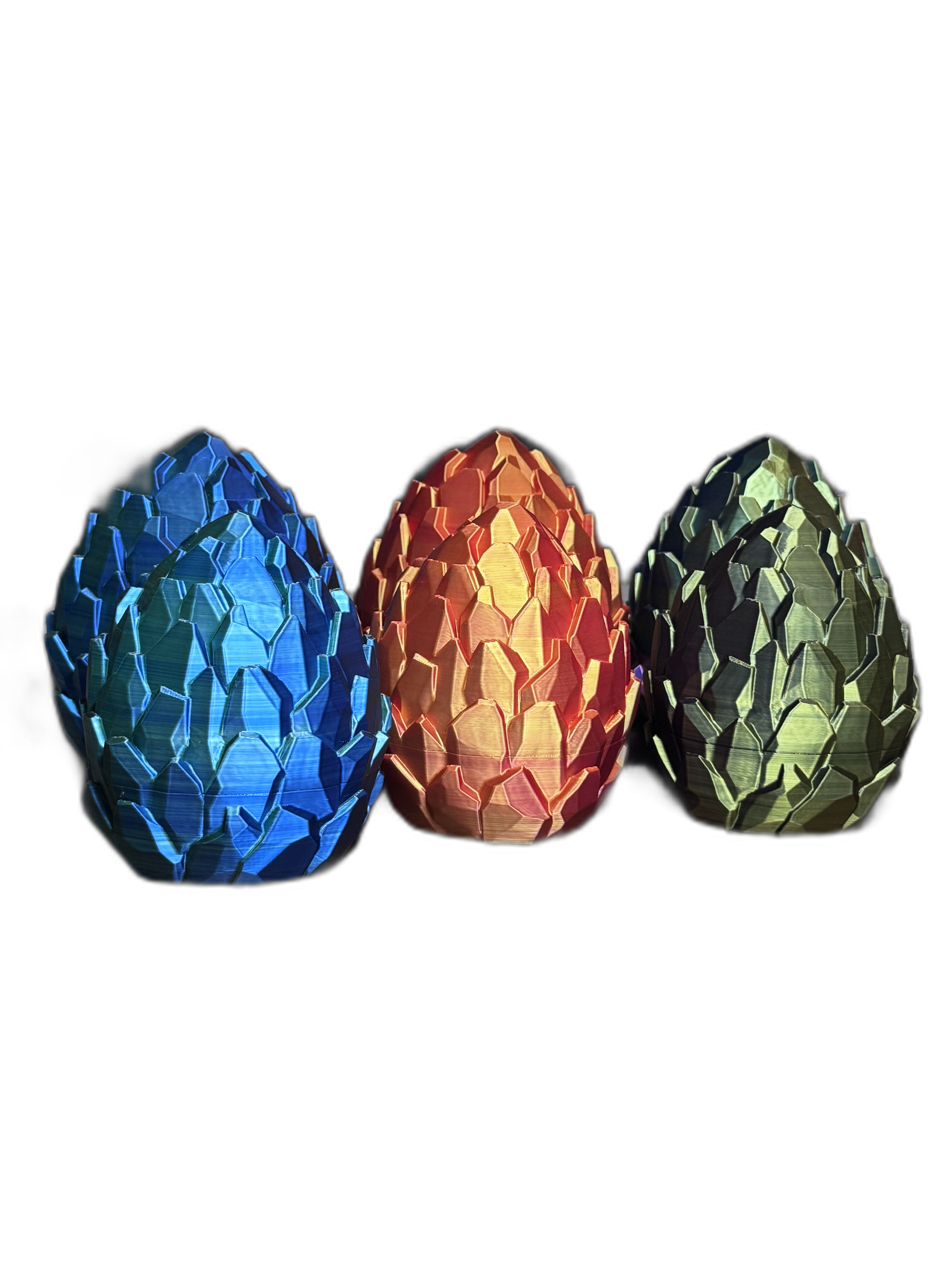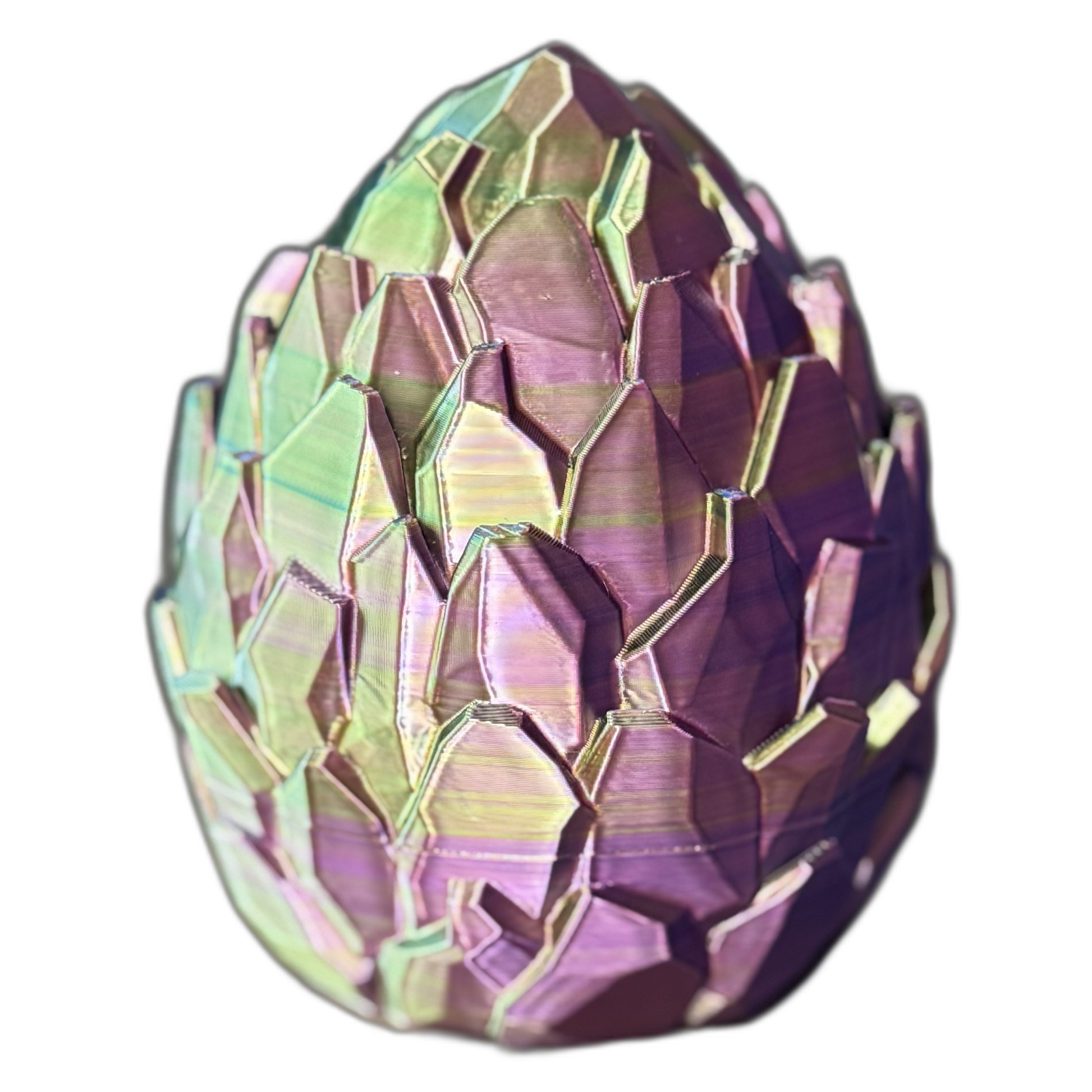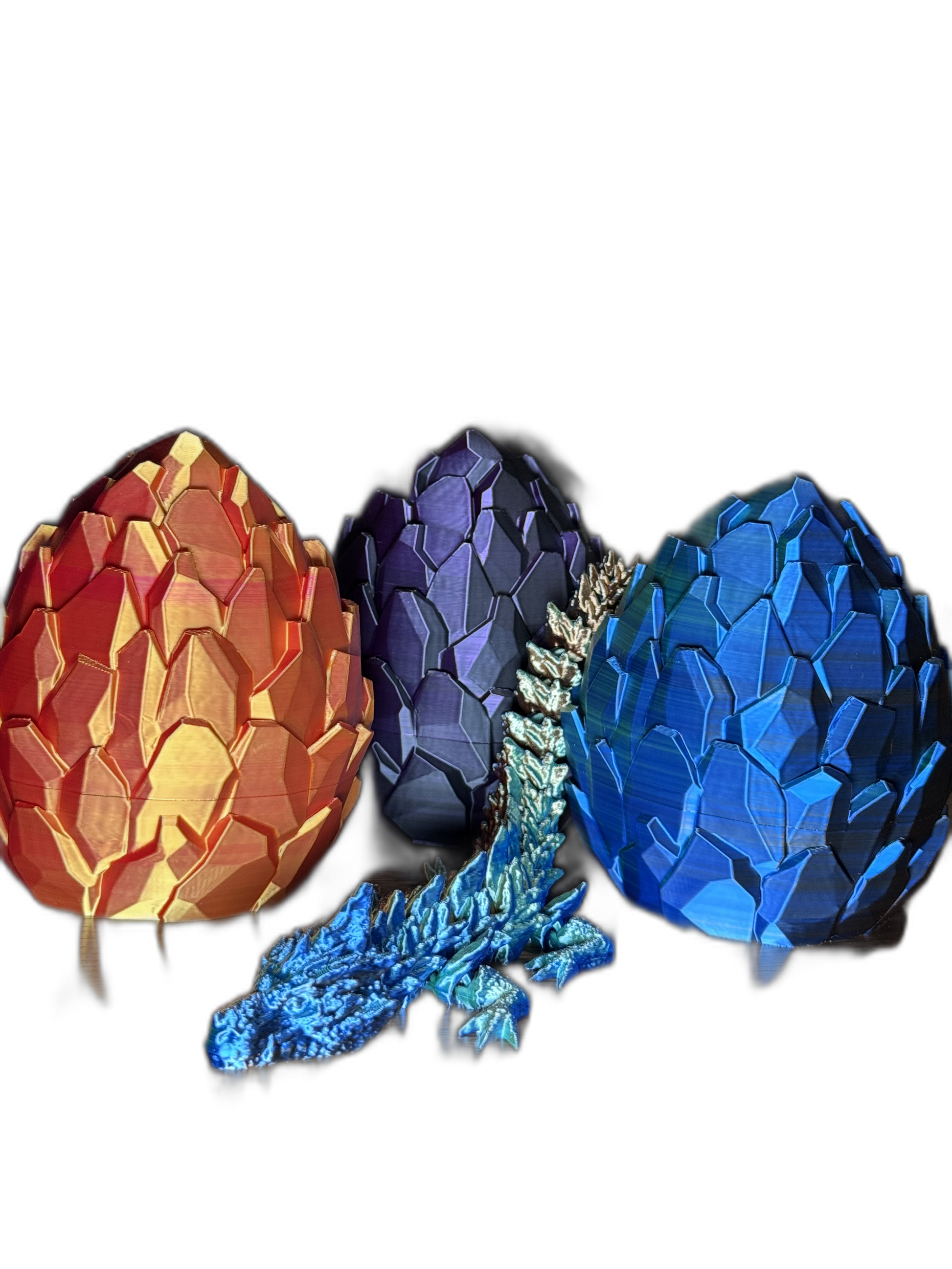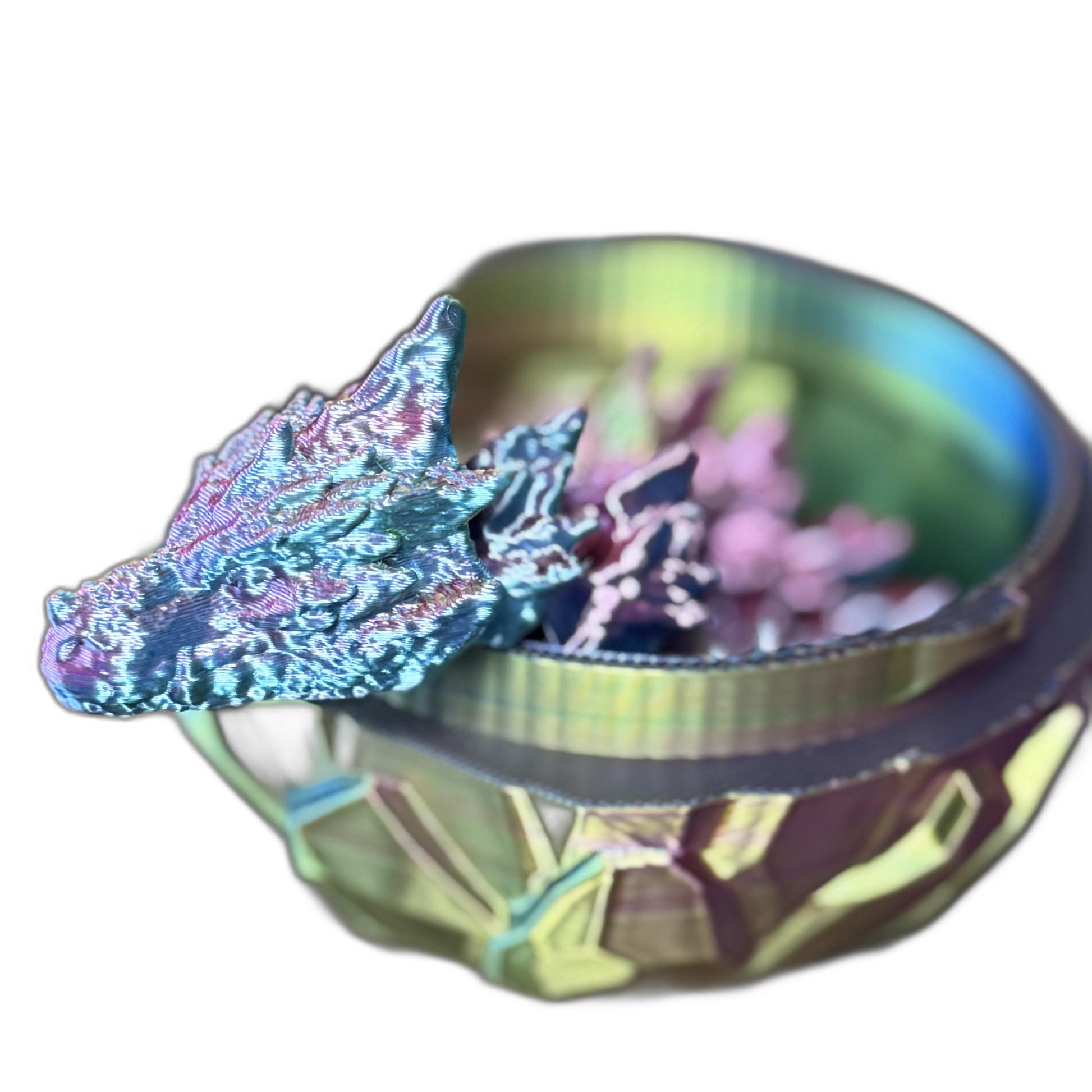 Crack open a crystal-coated legend. This magical 3D printed dragon egg features a twist-open design and reveals a fully articulated dragon inside — flexible, detailed, and coiled to fit snugly within the egg. Perfect as a fantasy display, gift for D&D fans, or a conversation-starting collectible.