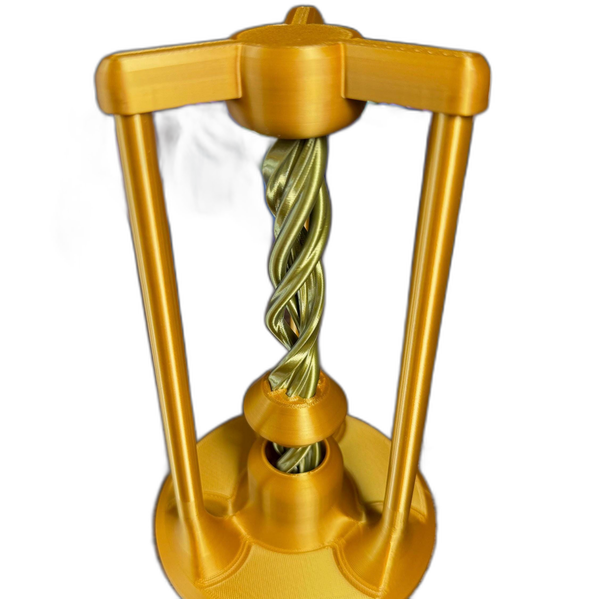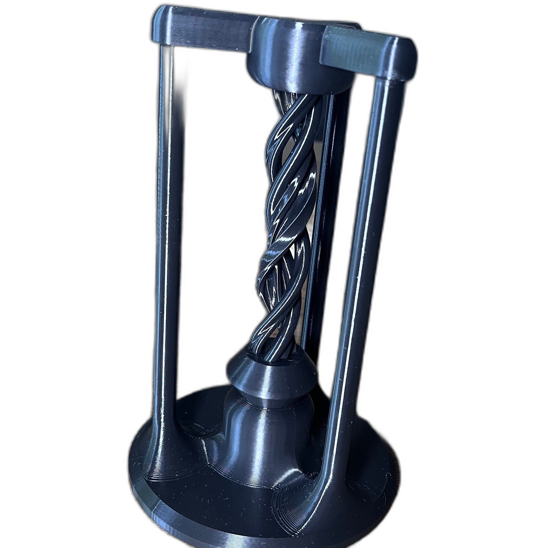 Enhance your workspace with the Portal Desk Sculpture, an optical illusion art piece that blends functionality with mesmerizing aesthetics. This desk accessory showcases the fascinating Barberpole illusion, achieved through a unique spiral screw that threads into a handle. Manipulate the handle to create the illusion of an infinite spiral, engaging your mind and sparking conversation.