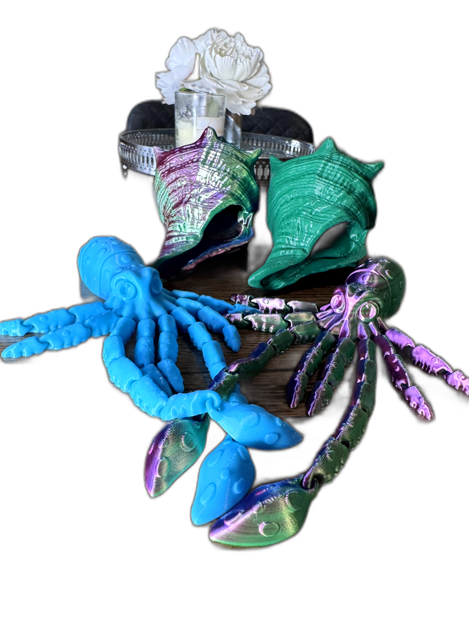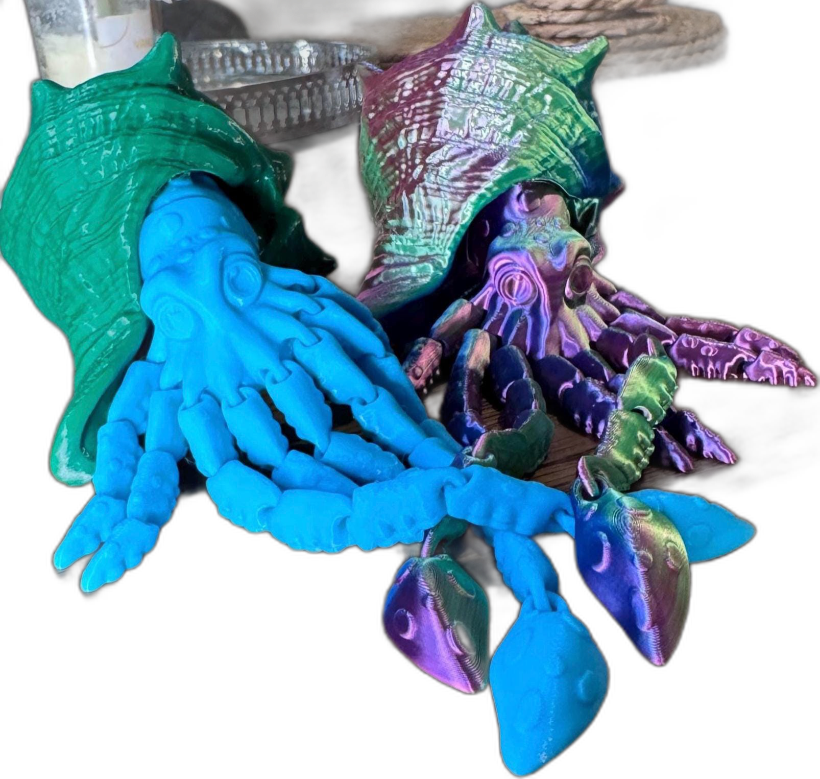 Dive into the world of sensory fun with Wavy the Articulated Squid — a mesmerizing 3D-printed collectible featuring fully articulated tentacles and a removable, ocean-inspired shell. Designed for stress relief, tactile play, and standout decor, Wavy brings the beauty of the sea to your workspace or collection.